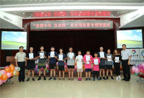 7月20日“亲情中华·汉语桥” 北京情思夏令营北京营闭营式在京举行,来自新西兰、澳大利亚、美国、奥地利等国家的34名营员参加了闭营仪式。北京市侨联副主席苏泳,北京中华文化学院副院长姜之茂,团市委青少年交流中心、东城区侨联等协作单位领导出席闭营式。北京中华文化学院副院长姜之茂主持闭营式。