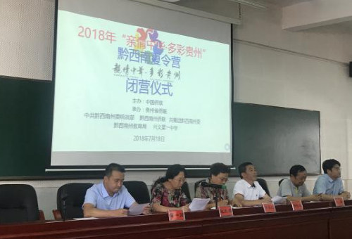 7月18日上午,由中国侨联主办,贵州省侨联、中共黔西南州委统战部、黔西南州侨联、共青团黔西南州委、兴义第一中学承办的2018“亲情中华·多彩贵州”黔西南夏令营在兴义一中圆满闭营。