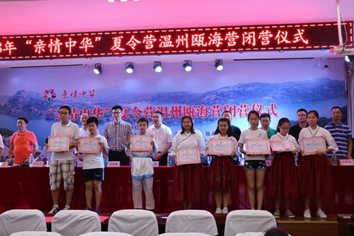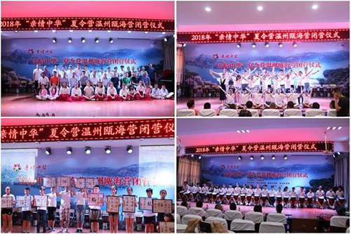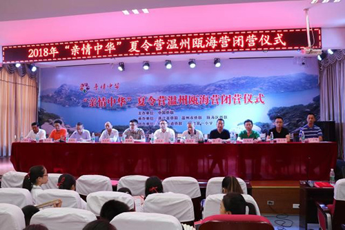 7月26日,2018"亲情中华”夏令营浙江温州瓯海营举行闭营仪式。浙江省温州市侨联党组成员、秘书长陈晓军,浙江省温州市瓯海区区委常委、统战部长潘晓勇等出席闭营仪式并讲话,教师和学生代表发表感言。