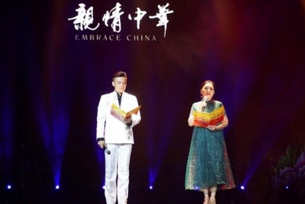 (当代诗人、词作家阿紫与张原铭表演诗朗诵《生如胡杨》)