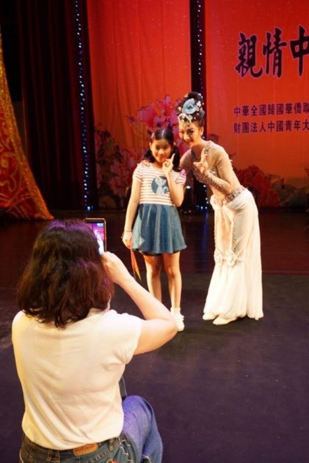 演出结束,观众纷纷涌上舞台,拉着演员拍照留念。正读国小五年级的余心云迫不及待地跑到表演《白纻舞》的舞蹈演员身边,让妈妈帮忙合照。“这是我第一次现场看大陆来的文艺演出,每一支舞蹈都好美。‘亲情中华’明年还会来台湾吗?”小姑娘望着美丽的舞蹈演员,眼中满是兴奋与不舍。