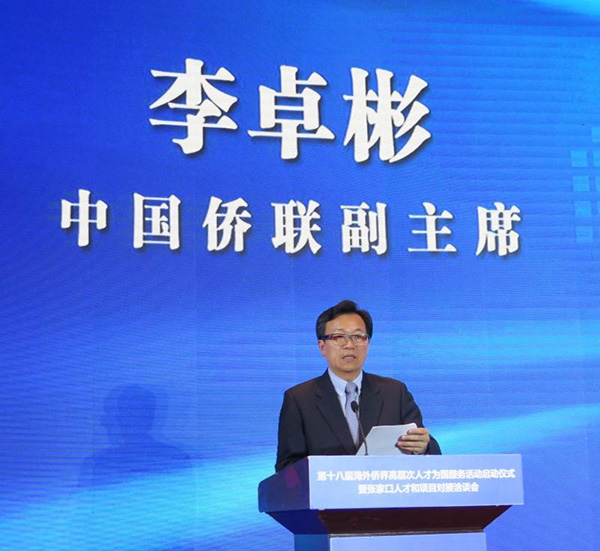 启动仪式上,李卓彬副主席首先介绍了第十次全国归侨侨眷代表大会的盛况,对近年来“海外侨界高层次人才为国服务活动”为国家科技创新和经济社会发展做出的积极贡献给予肯定,并对中国侨联与京津冀三地侨联举办更富有成效的为国服务活动提出了明确要求。他希望广大海外侨界朋友要珍惜国家发展为海外人才提供的难得机遇,珍惜国家为延揽人才、鼓励创新打造的良好环境,发挥专业优势和自身所长,为推动京津冀协同发展、建设世界科技强国献计出力、多作贡献。