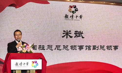 米斌副总领事在致辞中说:“非常高兴参加‘亲情中华’艺术团的欢迎晚宴,我和我的同事谨代表中国驻悉尼总领馆热烈欢迎‘亲情中华’艺术团到访悉尼!‘亲情中华’慰侨演出是一项非常有意义的品牌活动,艺术家们不远万里来到澳洲,一定会为悉尼侨胞奉献一台精彩绝伦的演出。“