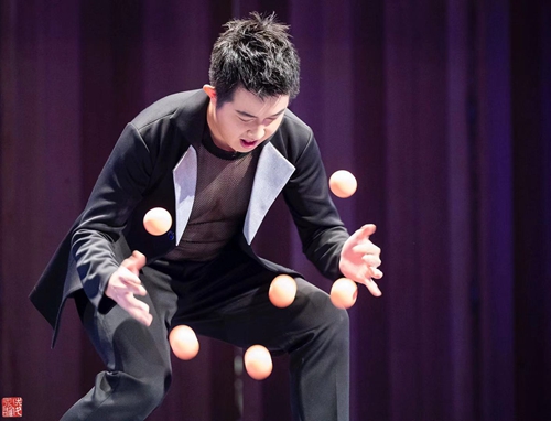 “太精彩了!”“太棒了......”今晚中国杂技团表演的四个节目令台下观众叫好声一片。十几位来自中国杂技团的青年演员们上演了多个荣获国际大奖的杂技节目。转碟《喧歌嘻调》动作高难、优美抒情,双人女子柔术表演《灵动》将柔美与力量完美结合、舞姿优美,集体空竹《俏花旦》俏皮中透露着典雅和华丽。中国杂技团青年演员赵晗龙带来了一场惊心动魄的球技表演,这个节目曾获得第二十七届朝鲜“四月之春”友谊艺术节金奖。这位优秀的青年演员在熟练地抛接着空中数个小球的同时,还不忘调动现场氛围,帅气的表演引得观众阵阵惊叫,整个剧院变成了热情的海洋。