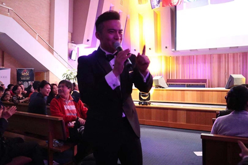 “亲情中华”演出主持人张原铭也是一名声乐演员,开场不久,他就以一首《咱老百姓》掀起了开场的第一个小高潮,台下观众纷纷掏出手机打开手电的灯光,高高挥舞,台下星光点点,演员与观众心手相连。