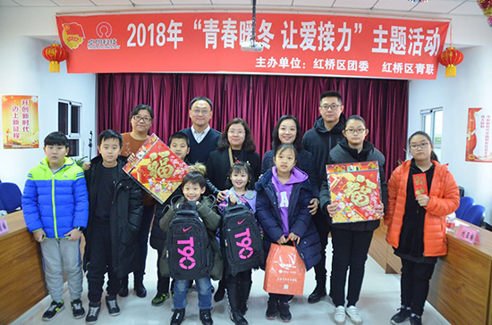2018年2月8日作者陈思作为红桥区青联委员慰问社区贫困儿童并赠送节日礼包