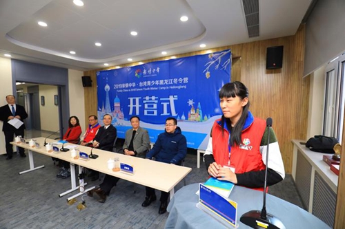 台湾桃园市警察大学赖沛云同学代表营员发言。她说,“哈尔滨的冰雪文化享誉世界,我们一直非常向往能有机会来到这座美丽的城市,今天,我们的愿望实现了,从昨天从台湾出发,一直到现在,我们还处在兴奋之中。非常感谢中国侨联,感谢黑龙江省侨联,我们要把在这里感受到的一切美好告诉我们的家人、我们的朋友,相信此行会是我们终身难忘的美好记忆。”