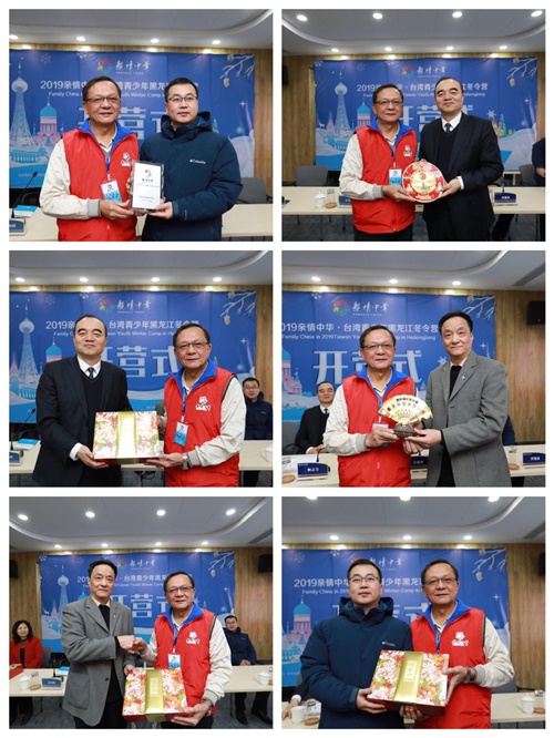 台湾领队老师与省侨联、黑龙江外国语学院、哈铁国旅互赠纪念品。