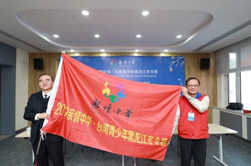 开营式最后,郭占力主席向台湾领队老师授旗,并宣布本次“亲情中华”·台湾青少年黑龙江冬令营正式开营。