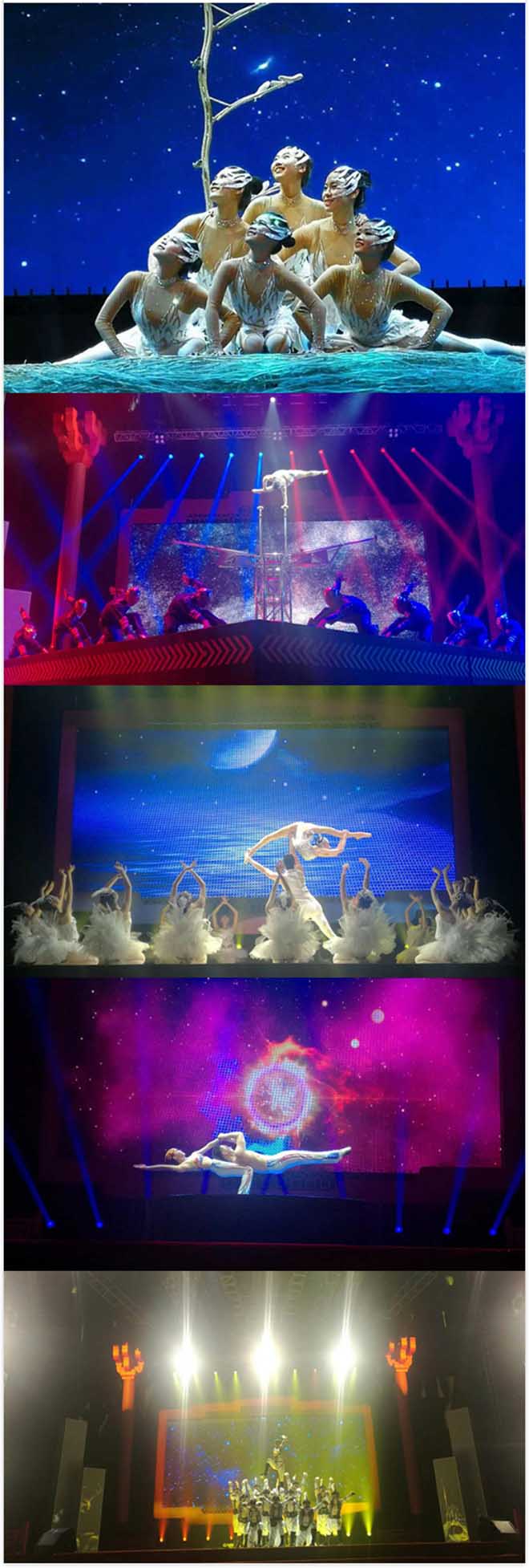 当晚的节目形式多样,精彩纷呈。中国人民解放军驻香港部队军乐队、三军仪仗队为整场演出拉开帷幕,贵州大兴东杂技团、广东南方歌舞剧团担纲的杂技、舞蹈节目洋溢着浓郁的民族风情和强烈的现代元素,多位知名声乐、器乐表现艺术家倾情献上高水准的演出,不时赢得现场6000多名观众的阵阵掌声。