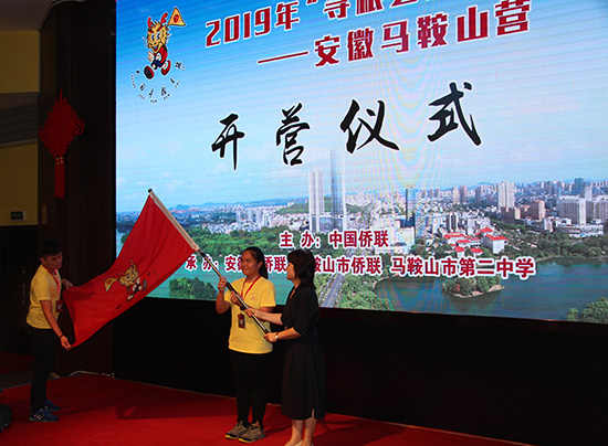 马鞍山市二中校长郭惠宇、马来西亚亚庇建国中学校长邬恒亮和营员代表胡敏愉分别作了发言。邢砚庄副部长向营员授旗,宣布夏令营活动正式开始。开营式前,马鞍山市二中师生们还进行了才艺展示。