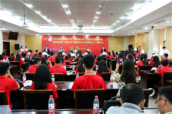 夏令营总领队张和然、营员代表许惠惠先后发言。陈锋宣布夏令营开营,并向营员代表颁授营旗。开营仪式由吴亚军主持。
