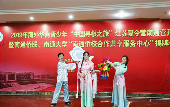 7月2日上午,一阵古朴典雅,悠扬婉转的古琴声在南通大学图书馆传出,配以古典诗词朗诵、海安花鼓和“非遗”服饰道具展示等,2019年“寻根之旅”夏令营—江苏南通营拉开序幕。来自印度尼西亚、美国、加拿大、葡萄牙等国家的近80名海外华裔青少年参加此次夏令营。江苏省侨联副主席兼秘书长陈锋,南通市人大副主任黄卫成,南通市侨联主席吴亚军出席开营仪式。