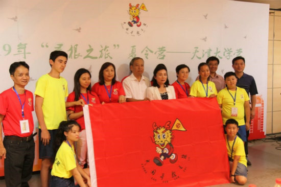 陈钟林希望营员们通过此次活动能够深入体验中华文化,激发学习兴趣,培养友好情谊,积极向亲人朋友介绍天津、分享感受,努力成为中华优秀文化的传播者、实践者,成为连接中国梦和世界梦的纽带。天津市侨联和天津大学将牢记责任和使命,为此次夏令营的圆满成功共同努力。随后陈钟林主席为海外领队及营员颁授营旗,并宣布2019年“寻根之旅”夏令营——天津大学营正式开营。