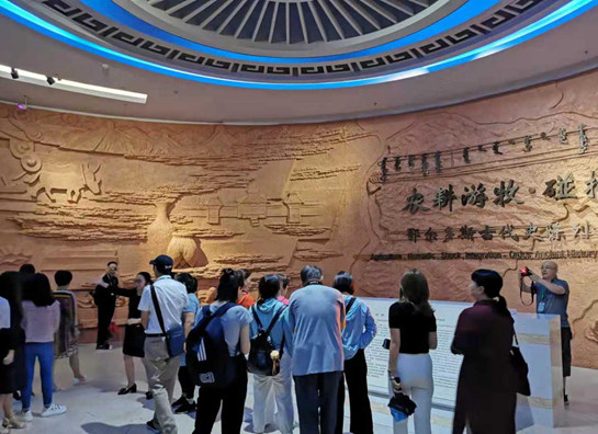 图为海外华媒人在鄂尔多斯博物馆参观。