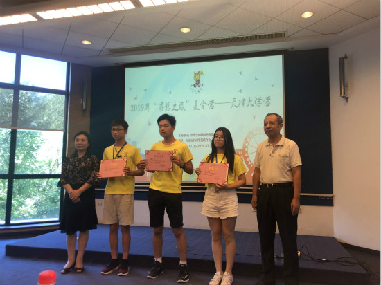 本次夏令营还评选出了杰出营员和优秀队长,天津市侨联和天津大学领导为他们颁发了荣誉证书和礼品。
