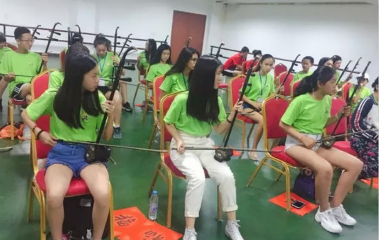 为了让华裔青少年近距离感受中国民乐的魅力,天华艺校还为营员们开设了民乐体验课程。二胡,一根琴杆顶天立地,两根琴弦连接东西;古筝历来被誉为是民族乐器中的瑰宝,古朴典雅美观大方,极具表现力和感染力。琴声悠扬,铮铮作响,同学们听着旋律不觉已陶醉其中。