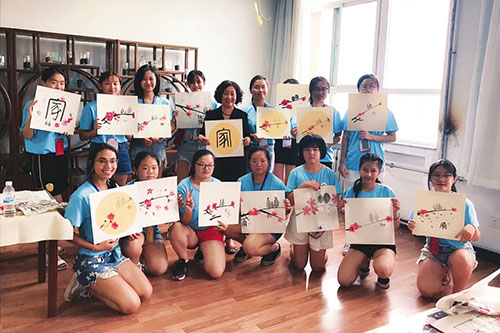 2019“中国寻根之旅”山西夏令营,每个营结束时都会有营员们的汇报演出,他们纷纷用精彩节目诉说着对中华文化的热爱。他们热情合唱《大中国》《把根留住》《保卫黄河》,他们穿着汉服端着茶壶用毛笔书写汉字,他们深情感言:“即便我们来自不同的国度,我们有一个共同的魂——中国魂,有一个共同的梦——中国梦,有一个共同的根——中华根”,表达心中真实的情愫……他们久久拥抱,不舍泪别。