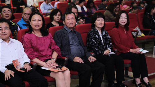 演出钟声尚未响起,剧场早已座无虚席。观众们兴奋地拿着制作精美的节目单,讨论着热切期待的节目。艺术团团长、中国侨联文化交流部副部长邢砚庄,台湾“立法委员’马文君,南投县议员黄世芳、林芳伃,台湾前水利署署长王瑞德,南投县文化局局长林荣森,县观光处处长王源钟等也在台下就座。