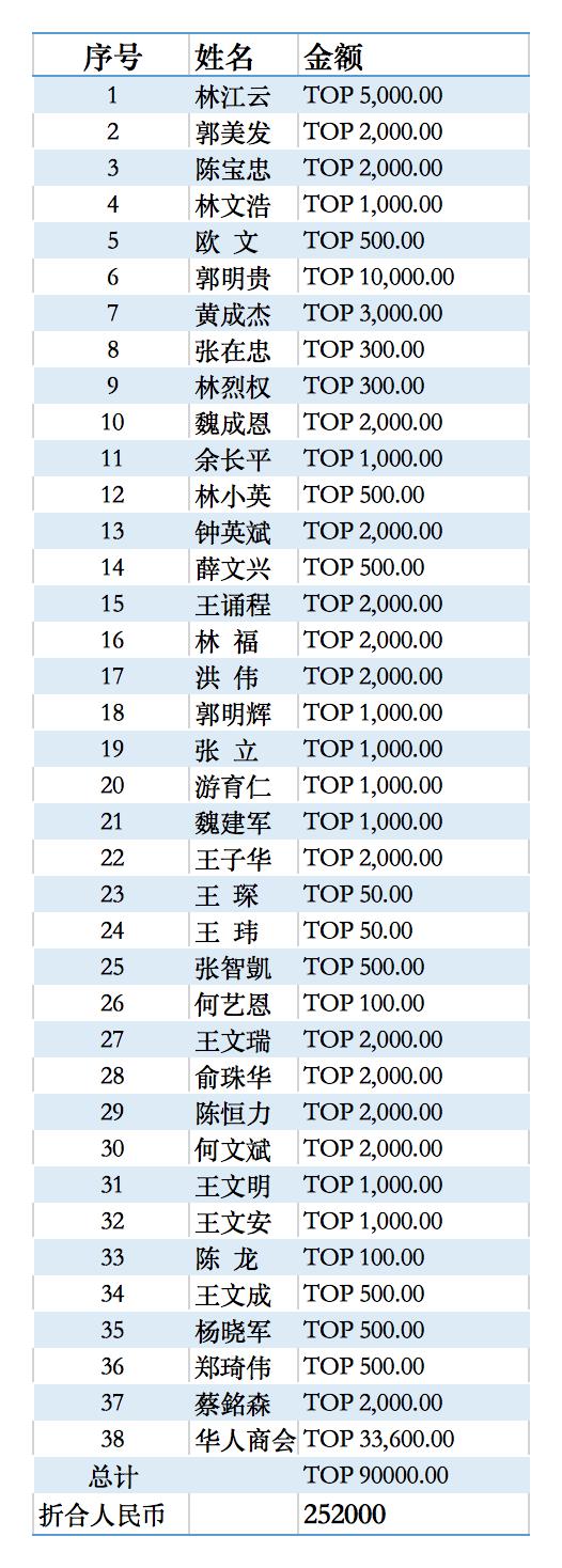 万众一心,共同抗击。新型冠状病毒感染的肺炎疫情牵动全球华人的心,汤加华人商会由俞珠华现任会长和王文瑞前任会长,携众理事和社会各界人士,捐资出力献爱心,共募集爱心资金人民币25万2千元整,捐至中国华侨公益基金会用于祖国抗击疫情。