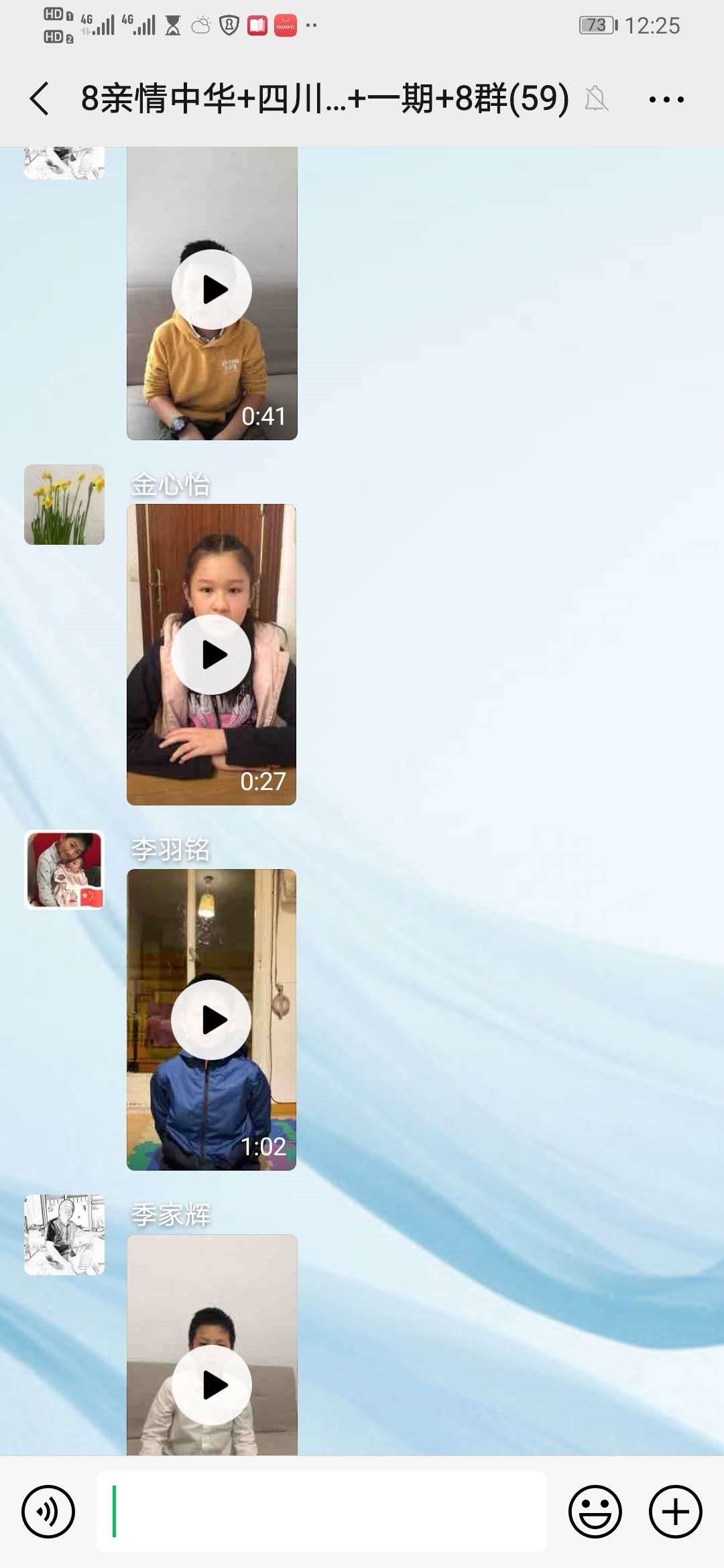 热闹欢腾的微信群中,家长朋友和孩子们积极踊跃,分享着自己的抗疫小故事,用不太熟练的中文表达了对祖(籍)国的思念,还即兴展示了自己创作的诗歌。开营式后,班主任布置了当天的学习内容,营员们积极响应,认真完成着打卡任务,大家纷纷表示对这次活动充满期待。