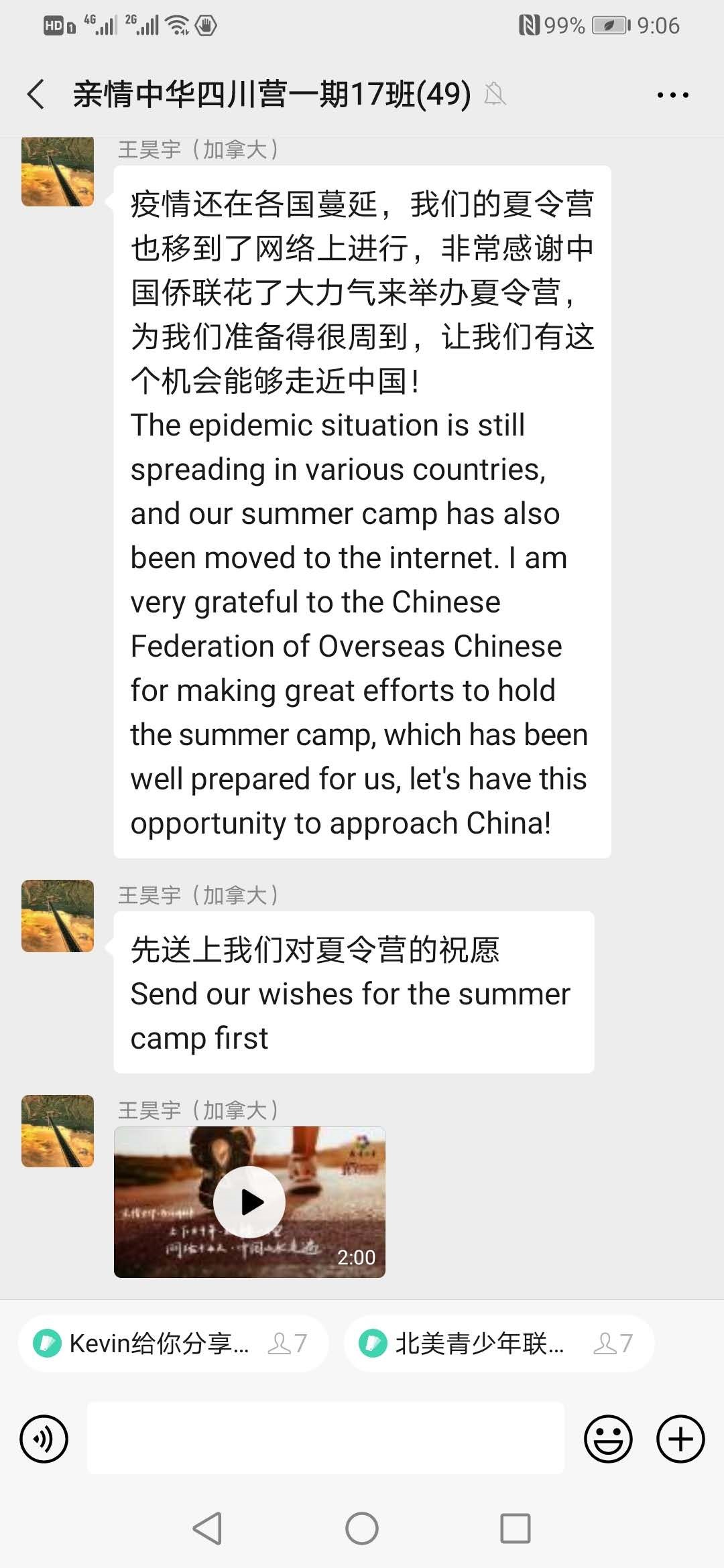 海外中文学校的学生们在网上夏令营的微信群中进行互动