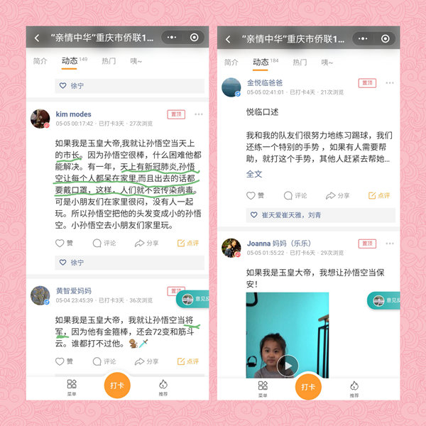 “亲情中华·为你讲故事”网上夏令营活动重庆市侨联1期将持续到5月14日,更多精彩表现,敬请关注!