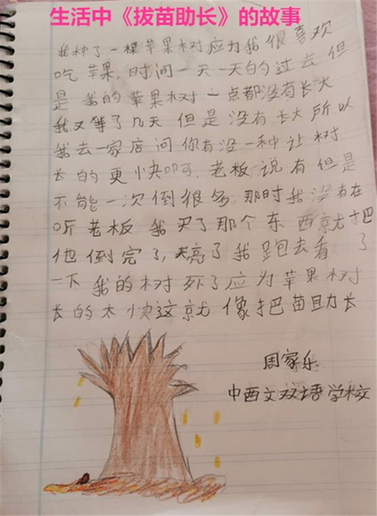 营员周家乐分享生活中关于《拔苗助长》的故事