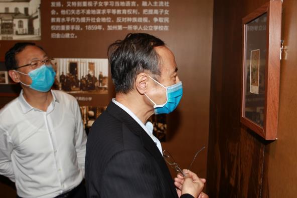 万立骏参观了即将开幕的《千年沧桑皆姓唐——明信片上的旧金山唐人街特展》和已闭幕的《秋色花街映乾坤——侨乡佛山非遗文化展》,认真听取讲解,不时驻足仔细观赏藏品,询问展览策划细节,围绕展览内容结合侨联工作同大家交流。他对两个展览的展陈设计给予肯定,认为具有浓厚侨文化特色。
