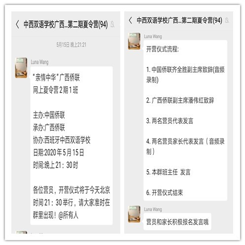 5月15日,“亲情中华·为你讲故事”网上夏令营广西二期正式开营。46名西班牙中西双语学校学生,参加广西侨联第二期网上夏令营活动。
