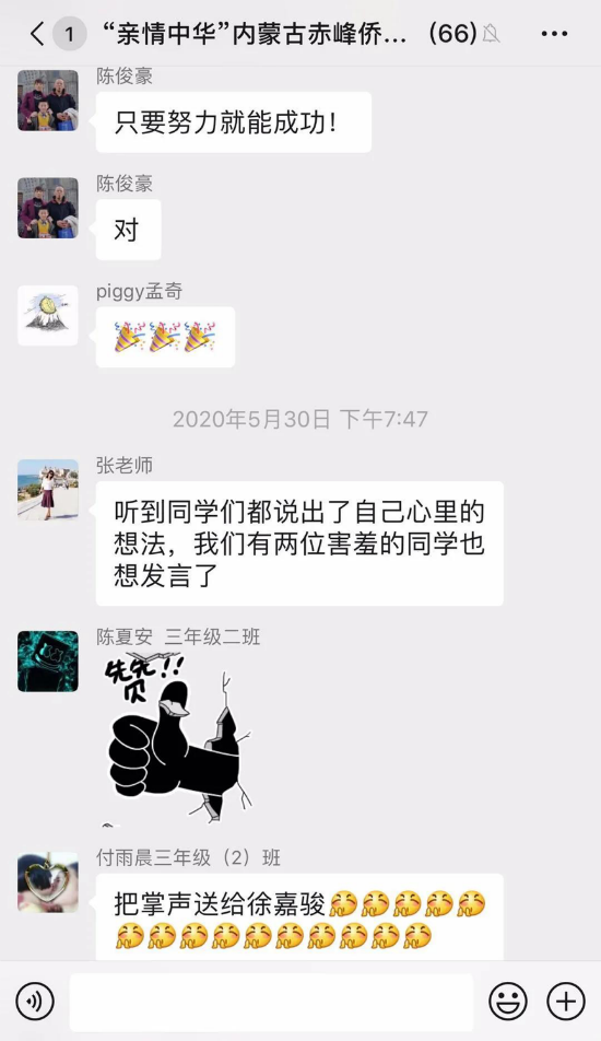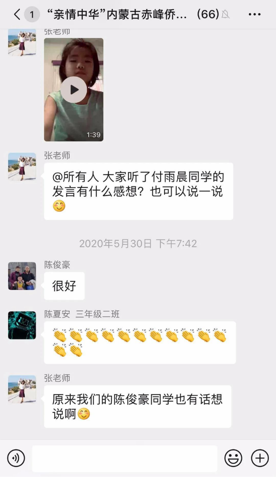 5月30日下午,“亲情中华·为你讲故事”网上夏令营内蒙古赤峰营第三期正式开营,中国侨联、内蒙古自治区侨联、赤峰市侨联和西班牙巴塞罗那孔子文化学校、缅甸曼德勒福庆学校的老师、孩子们通过微信视频、音频的方式进行了云见面,来自西班牙巴塞罗那孔子文化学校和缅甸曼德勒福庆学校的191名华裔青少年齐聚云端,共同开启了学习中华文化的云之旅。