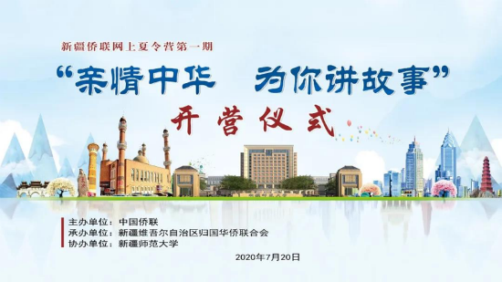 7月20日,由中国侨联主办,新疆维吾尔自治区侨联承办,新疆师范大学协办的“亲情中华·为你讲故事”网上夏令营第六期新疆营举行了开营仪式。在接下来的十五天里,新疆师范大学国际文化交流学院的老师们将与华裔青少年相聚在云端,交朋友、学知识、通文化、开眼界,一起度过美好的暑期生活!