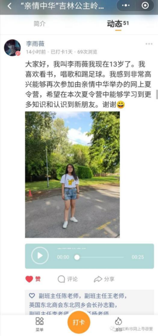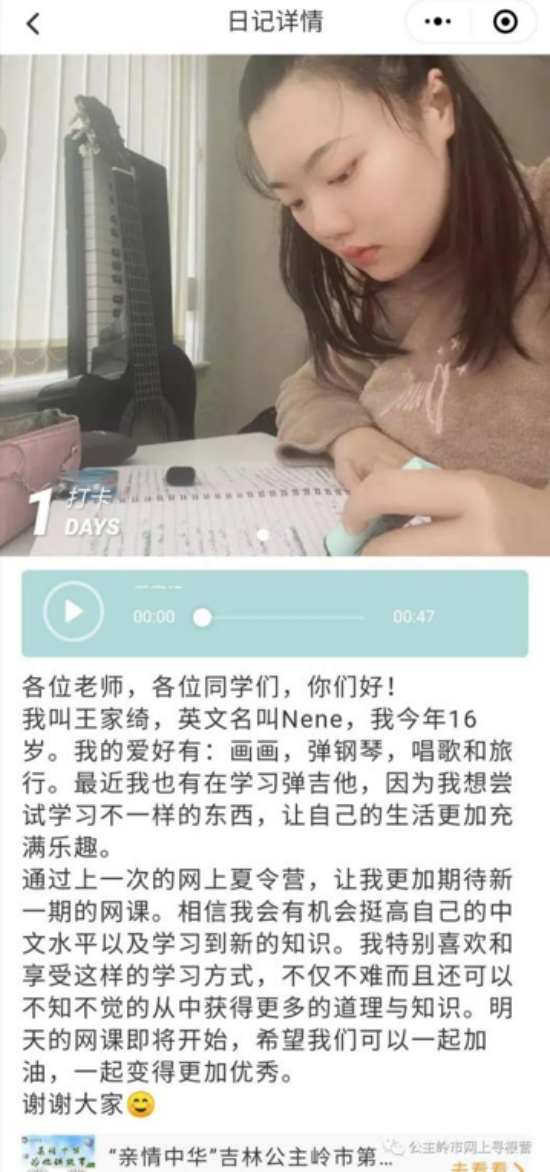 小营员们纷纷表示,“亲情中华·为你讲故事”网上夏令营活动为华裔青少年提供了一个学习中华文化的机会,以听故事的形式,激发学习兴趣,寓教于乐,在轻松愉快的气氛中,不仅能学到博大精深的中华文化,还能了解吉林的民俗风情。他们期待在夏令营期间,能收获知识,结交朋友。