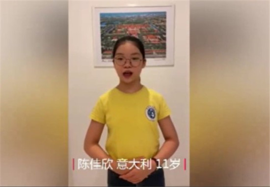 意大利营员代表陈佳欣很高兴能参加本次秋冬令营活动。她说这让他们这些生活在海外的华裔孩子们能够增进对中国的了解,牢记自己的根,自己的魂。她相信全体营员一定会以好学向上的态度来参加此次秋冬令营活动,大家一定也都会收获满满。