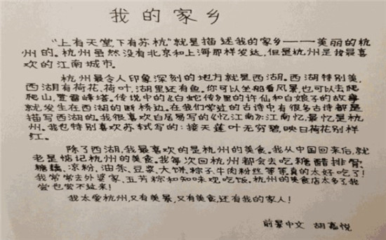 美国营的黄睿祺小朋友很高兴能参加本次秋冬令营,继续学习中文。他非常喜爱中华文化,并被中国传说中的人物深深吸引,他希望有机会亲自游览传说中那些美丽的地方,学习了解更多浙江的风土人情。 王思涵小朋友自称“小吃货”,她对浙江11个市的特色小吃如数家珍:杭州的葱包烩和西湖藕粉、宁波的汤圆和酒酿丸子、温州的矮人松糕和熏鸡...她也希望通过这次秋冬令营学习更多浙江风土人情。此外,全美青少年协会还开办了《话说浙江》讲座,由营员们分享他们的学习成果。