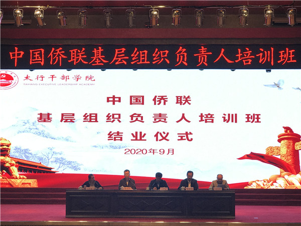 9月24日,中国侨联2020年首期基层组织负责人培训班在山西省长治市太行干部学院圆满落下帷幕。这是中国侨联为进一步提升侨联干部素质,推动新时代基层侨联工作实现新发展,于今年疫情防控常态化下举办的首个基层侨联组织负责人培训活动。中国侨联基层建设部副部长刘景春出席结业仪式并作总结讲话。山西省侨联副主席范安龙、太行干部学院党委副书记吕志刚出席会议并为学员颁发结业证书。