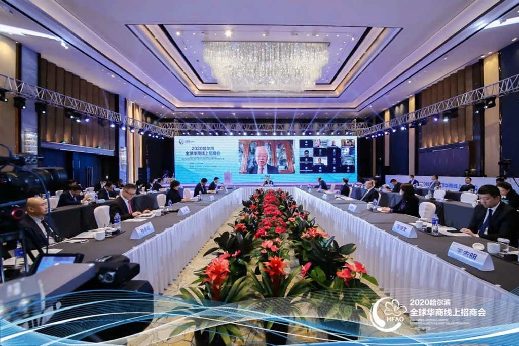 9月22日晚,由哈尔滨市政府主办,市外事办、市侨办、市侨联承办的2020哈尔滨全球华商线上招商会成功举办。活动吸引海内外华侨华商的广泛关注和参与,通过网络直播平台观看人数超过三十万人次。全国政协常委、中国侨商联合会会长、世茂集团创始人、董事局主席许荣茂视频致辞,中国侨商联合会监事会监事长、全国政协海外列席代表、美国华人企业家联合会会长、德迈国际产业集团董事长施乾平,省侨联党组书记、主席郭占力,市委副书记、市长孙喆在会上致辞。中国侨联副秘书长、经济科技部部长赵红英,中国侨商会副秘书长董磊石,哈尔滨新区管委会主任王铁力,市工商联主席徐伟,市政府秘书长方正辉及市外事办、市侨办、市侨联等单位领导参加会议。市委常委、副市长张万平主持会议。