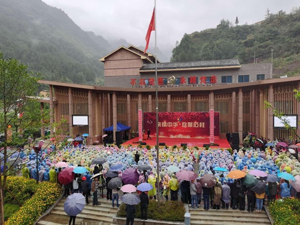 演出当天,阴雨绵绵的天气没有消减中益乡父老乡亲的热情。距离演出开始还有一个多小时,观众席上甚至是舞台对面的楼房平台上,挤满了前来观看的群众。而艺术团的倾情演出也没有让翘首以待的观众们失望。来自全总文工团、中国煤矿文工团、中央民族乐团、中国国家交响乐团、北京民族乐团等多个艺术院团的歌唱家们轮番上台,献上《我和我的祖国》、《我爱你中国》、《山歌唱出好兆头》等多首脍炙人口的歌曲,深情款款的歌声赢得此起彼伏的掌声,唱出台下观众满怀感恩的心声。重庆市委办公厅驻中益乡工作队还献上自编自导自演的小品《奔小康的路上一个都不能少》,展现出各部门干部纷纷出力,与当地群众共同打赢脱贫攻坚战的齐心协力。