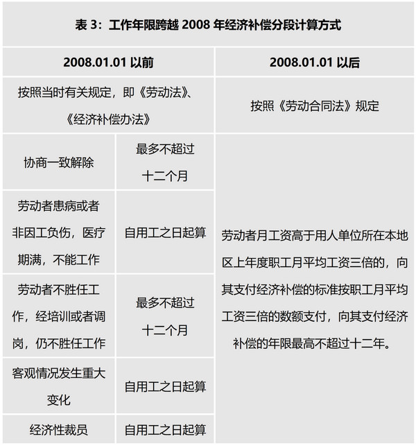 三、劳动者工作年限跨越2008年1月1日前后,经济补偿如何计算?