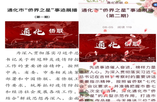 2020年是不平凡的一年,通化市侨联按照中央、省委、市委相关决策部署和中国侨联、省侨联工作要求,统筹抓好疫情防控和复工复产各项工作,在此期间,市侨联积极探索创新举措,抓出特色亮点,丰富实践内容,纵深推进侨胞之家建设,在全市开展“侨界之星”评选宣传活动,联合市侨办评选出92名通化市“侨界之星”和12名通化市儿童“侨界之星”。旨在发挥先进典型的示范带动作用,倡树服务发展、勇于担当、甘于奉献、争创一流的核心价值观,引领全市侨界学先进、当先锋、做模范,用先进典型引领社会、凝聚力量、提振信心。