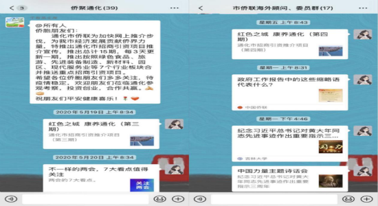并充分运用“侨聚通化”“市侨联海外顾问委员联络群”等线上平台,开展“通化市招商引资推介项目线上宣传”系列活动,积极宣传推介通化生物医药、绿色食品、旅游、先进装备制造、新材料、现代服务业等7个行业板块及以16个产业链条为依托的近100个招商引资项目,引导侨资侨属企业来通化投资兴业。