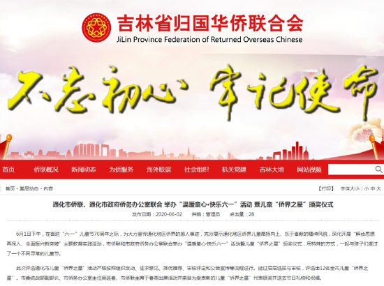 三是举办“温暖童心·快乐六一”活动暨儿童“侨界之星”颁奖仪式。在喜迎“六·一”儿童节70周年之际,充分展示通化地区侨界儿童昂扬向上、乐于奉献的精神风貌,深化开展“解放思想再深入、全面振兴新突破”主题教育实践活动,举办“温暖童心·快乐六一”活动暨儿童“侨界之星”颁奖仪式,用特殊的方式,一起与孩子们度过了一个不同寻常的儿童节。