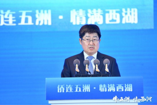 浙江省副省长朱从玖在致辞中表示,浙江是全国重点侨乡和侨务资源大省,侨胞分布广、结构新、贡献大。改革开放以来,广大归侨侨眷和海外侨胞以拳拳赤子之心情系桑梓、奉献社会,成为推动浙江改革开放和经济社会发展的重要力量。特别是在今年抗击新冠肺炎疫情的过程中,广大侨胞不遗余力支持浙江打赢疫情防控阻击战,再一次用实际行动诠释了情系祖国、心系家乡的大爱情怀,用同舟共济、共渡难关的赤子之心谱写了一曲感人赞歌。希望广大侨商进一步抓住浙江发展的战略机遇,在新一轮科技革命和产业变革发展中,为浙江创新发展注入新的动力,实现互利共赢。浙江省将不断为广大侨商来浙投资兴业提供政策支持和优质服务,营造良好的营商环境。