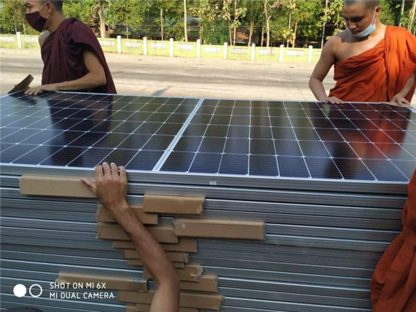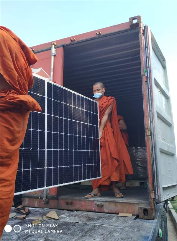 2020年12月18日,由中国侨联主办、中国华侨公益基金会和常州天合智慧能源工程有限公司具体执行的绿色益惠-澜湄合作光伏离网发电项目有了新进展。光伏组件物资,历时32天成功送抵缅甸仰光坦林寺古佛学院(Sitagu Buddhist Academy Aung Chan Thar, Thanlyin, Yangon)。缅甸仰光坦林寺古佛学院是寺庙+小学/高中+技术学校+宿舍+食堂为一体的综合机构,其中寺庙僧人450-480人左右,小学/高中/佛校学生750-800人左右,其中有周边居民学生就读,技术学校学生200人,为高中毕业没考上大学的学生提供技术培训,提高就业机率。