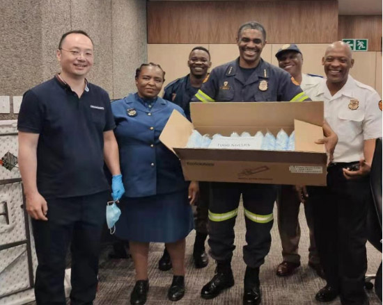 南非疫情封锁之初,当地防护物资紧缺,防护用品价格高涨,连政府采购都有不少困难。孙耀亨委员积极联络当地侨团侨企,向参与疫情防控一线的警察、消防员、医护人员等捐赠了超过70000个口罩、近千瓶消毒液,以及护目镜和手套等防护物资,缓解了当地的燃眉之急。随着封锁状态的不断持续,民众无法工作也没有收入,维持温饱尤其是贫苦民众的基本温饱成了抗疫以外最重要的民生问题。孙耀亨委员又组织当地华侨华人向贫民区、养老院和援助中心等捐赠食物、日用品和过冬物资,受益人数达6000余人。学校复学后,孙耀亨委员和当地华侨华人又第一时间捐赠口罩和围巾等物资,帮助学童们抗疫和御寒。