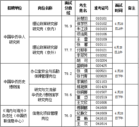 中国华侨华人研究所理论政策研究部研究岗(京内、京外)进行面试。