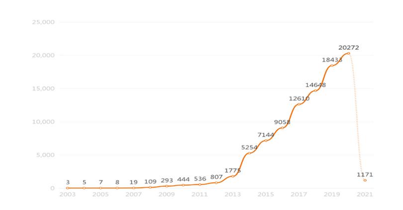 近年来,随着我国经济的发展,人民生活水平的提高,保险行业进入了高速发展期。2020年新冠疫情暴发后,保险业通过捐赠保险、扩大承保责任、提供便捷理赔等方式,在抗击疫情和帮助企业复工复产方面发挥了重要的保障作用。在保险业发挥保障作用的同时,同样不能忽视的是,随之产生的保险合同纠纷案件。通过公开渠道检索发现,从2003年至2020年,仅以人身保险合同纠纷为案由的纠纷案件共计91,000余起,从年份分布看,呈逐年增长的趋势。