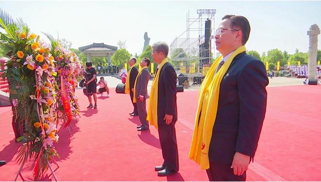 2021年6月6日(农历四月二十六),辛丑年世界华人炎帝故里寻根节开幕式暨拜谒炎帝神农大典在中国华侨国际文化交流基地——湖北随州炎帝故里隆重举行。中国侨联党组成员、副主席程学源出席开幕式并敬献花篮。