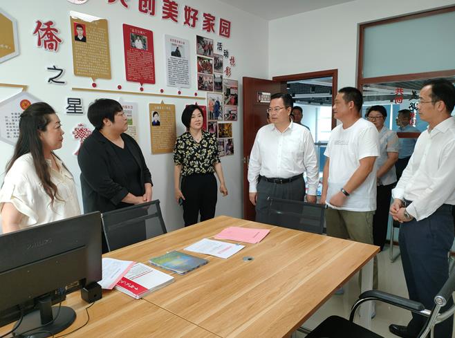 当天下午,程学源一行来到宜城市鄢城街道宋玉社区“侨之家”,实地调研社区“侨之家”建设运行情况。程学源认真听取社区有关负责同志的介绍,与侨界志愿者以及正在参加活动的归侨侨眷亲切交流。程学源肯定了宋玉社区“侨之家”建设的工作成果,并对当地侨联组织提出希望。一是坚持党建带侨建,以开展党史学习教育为契机,认真为侨界群众办实事,关心归侨侨眷的生产生活,把党和政府的温暖和关怀传递给侨界群众。二是充分利用“侨胞之家”的平台,开展面向基层、广大侨胞喜闻乐见的活动,把“侨胞之家”真正打造成为归侨侨眷的“温暖之家”。三是加强基层侨联组织建设,增强各级侨联之间的沟通联动,发挥好侨界公益力量,提升基层侨联组织的组织力、凝聚力和感召力。