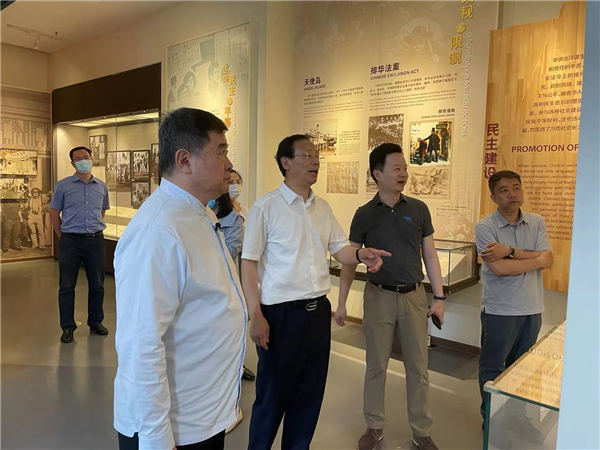 中国华侨历史博物馆馆长臧杰斌对单霁翔一行的到来表示欢迎,并为单霁翔介绍侨博特色和展厅情况。臧杰斌对单霁翔和东城区委宣传部的领导说,在中共党史学习教育的热潮中,中国华侨历史博物馆作为全国爱国主义教育示范基地,很荣幸成为线路中的一个重要打卡地,希望侨博能够在东城区党史学习教育和红色基因传承中发挥影响力,起到重要作用。
